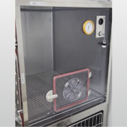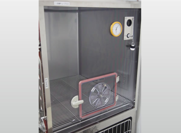 室内の湿度、温度、酸素濃度を自在に設定でき、心臓病や呼吸器疾患など呼吸状態の悪い動物の治療に力を発揮します。