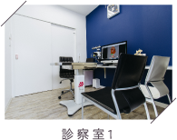 1面の壁が和風な緑色になっています。超音波検査室として使用することも可能です。