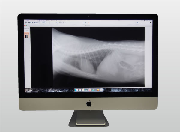 診察室内のパソコン内に入っているシステムで、DRシステムから送られたX線画像を処理し、拡大したり、過去のものと比較したりしながらレントゲン結果の説明ができます。