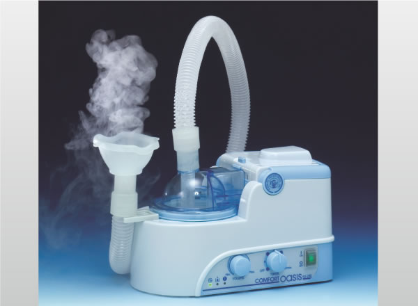 薬剤を超音波で微細な霧状にし、吸引することで直接呼吸器に薬剤を届けることができます。