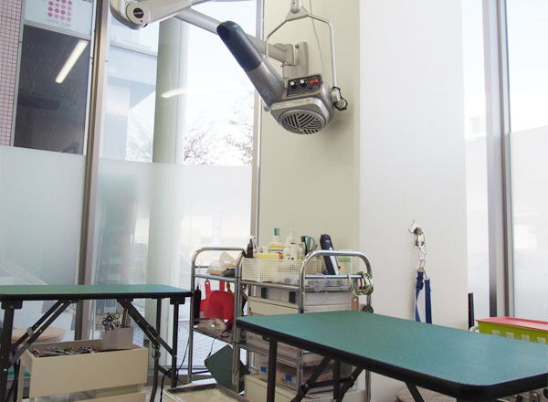 トリミングのシャンプー・カットを行う場所です。大型犬やネコちゃんにも対応できます。