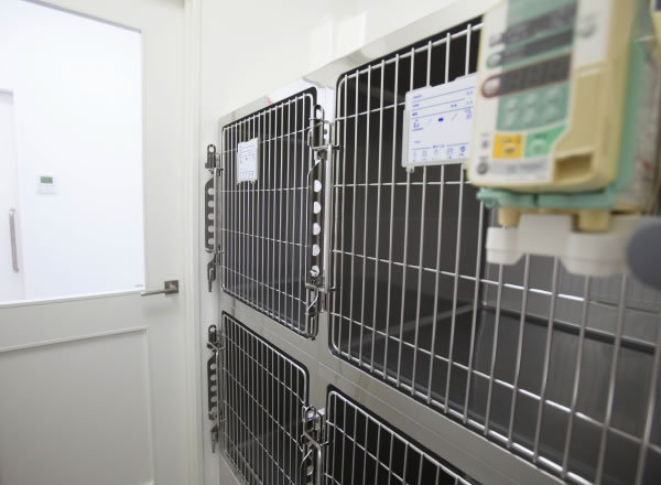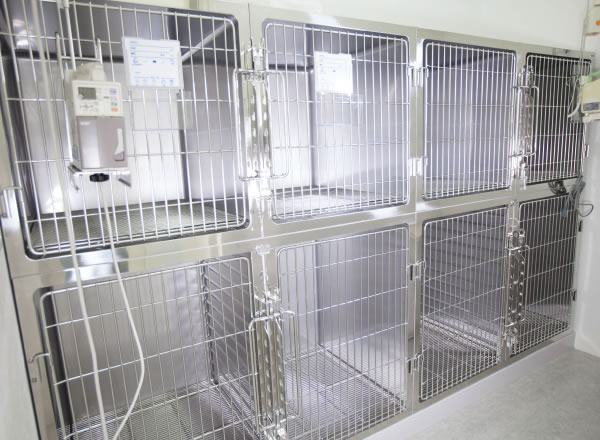 ワンちゃんの入院の場所です。酸素室もあるので、呼吸の悪い子にも対応することができます。