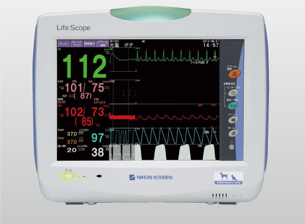 麻酔中の心電図・心拍数・脈拍数・呼吸数・血圧・体温・呼気ガス・麻酔ガス濃度・動脈血酸素飽和度を監視します。どんな健康な動物でも全身麻酔をかけるのはリスクを伴いますが、異常を早めに検知し対処することで、リスクを減らすことができます。